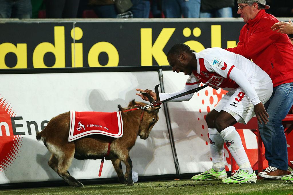 一看到科隆的的队徽,肯定会被左边的羊吸引到。这只羊名叫亨内斯,是科隆的吉祥物。名字来源于科隆传奇教练亨内斯-魏斯魏勒。科隆一代代吉祥物也一直继承着亨内斯这个名字。现在的吉祥物是亨内斯八世。除此之外,在科隆队徽的左下角还有举世闻名的科隆大教堂。