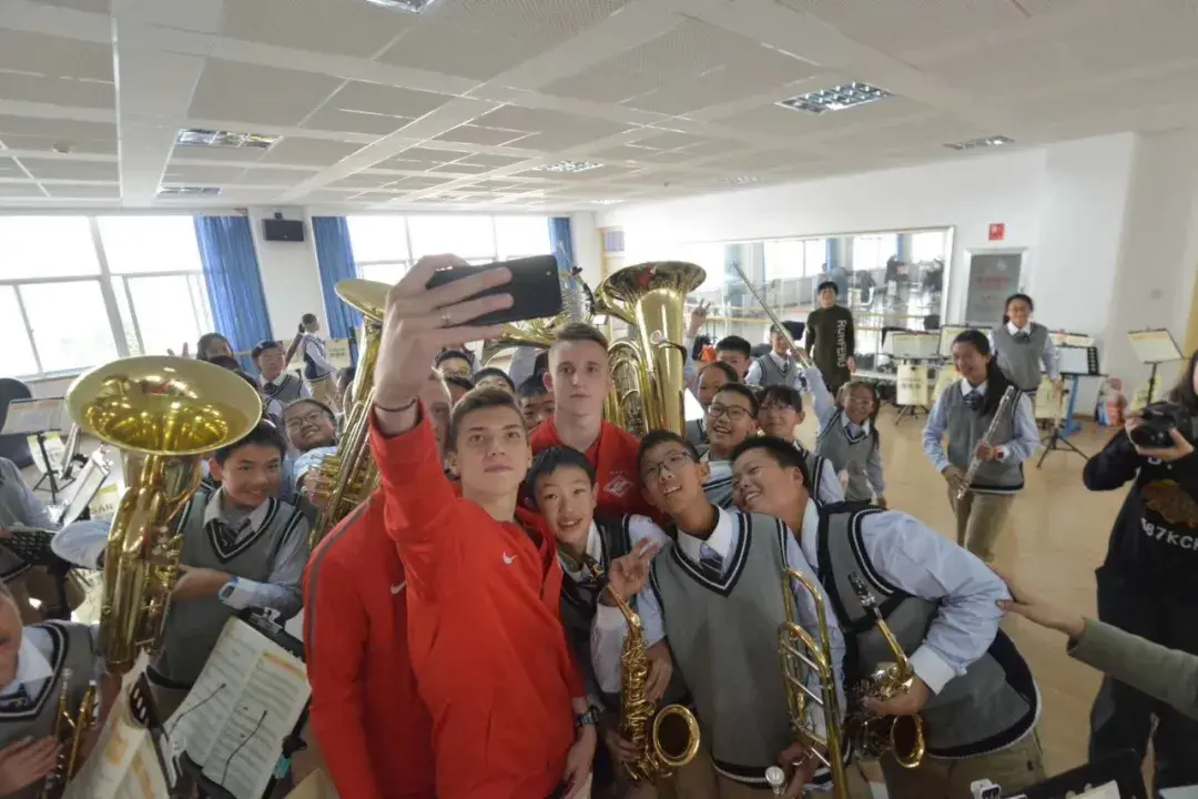 ▲莫斯科斯巴达队到访昆一西,与交响乐队的同学互动