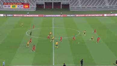 3分钟之后,国足的第2个丢球,则是“系统性”的失误:澳大利亚从后场向前推进,国足基本不设防!张稀哲、金敬道、吴曦的中场组合,未能阻挡澳大利亚的进攻。