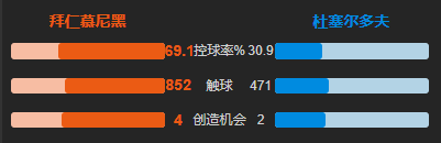 控球率:拜仁慕尼黑69%,杜塞尔多夫31%;