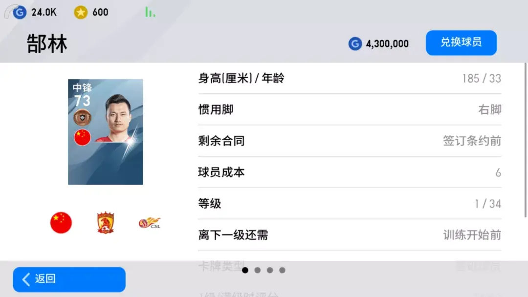 收集到国脚后,首先确定自己能不能用,确定了之后再开始肝满级,白球铜球基本都是四五十级起步的,至少都是100000+经验,如果想要有18人的满级阵容,也是需要时间慢慢肝。