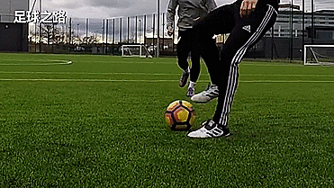 第三种也是最后一种穿裆过人可以用在两边也可以用在中场,这个动作有点隐蔽,我们要做的是和对手面对面,我们要用离球最远的脚跨过球。