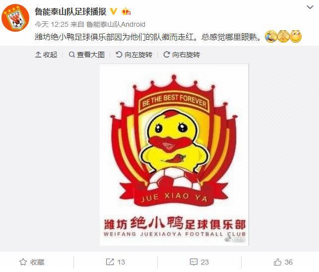这家名叫“潍坊绝小鸭”的足球俱乐部,他们在队徽上画了一个小黄鸭,而且背景图更是和恒大的队徽十分相似,一股浓浓的山寨风。