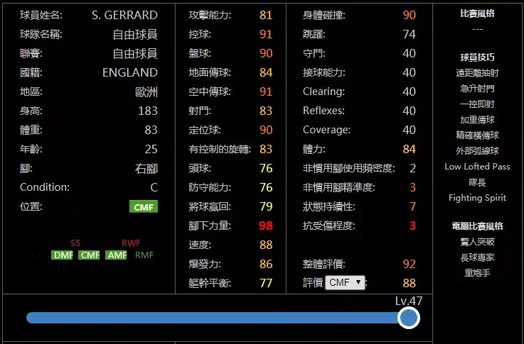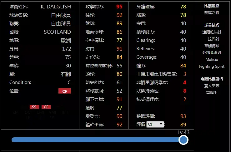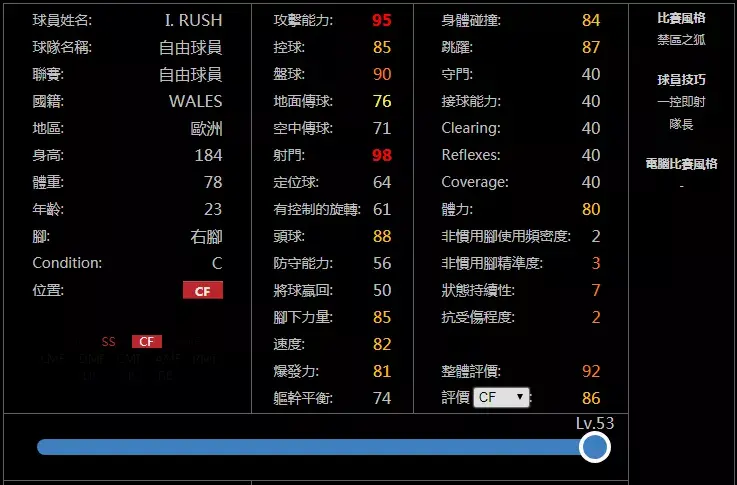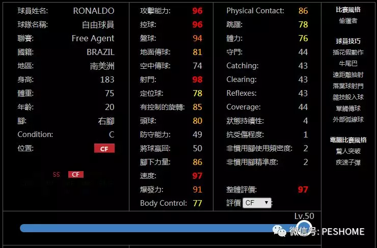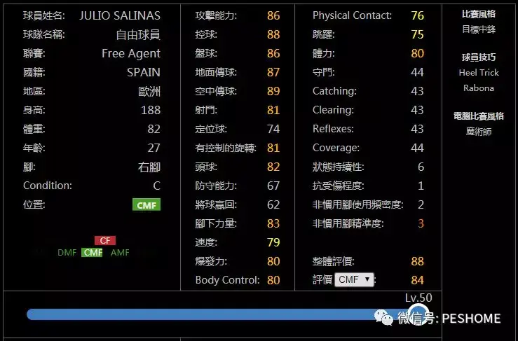 1.以下部分传奇属性图并不亮眼,是因为17赛季前登录实况足球的传奇等级上限固定为50级,但依照现在的标准来算,各项属性会有极大程度的提高 ,比如保利诺·阿尔坎塔拉的满级属性在状态固B的加持下,恐怕会达到粉传的水平;