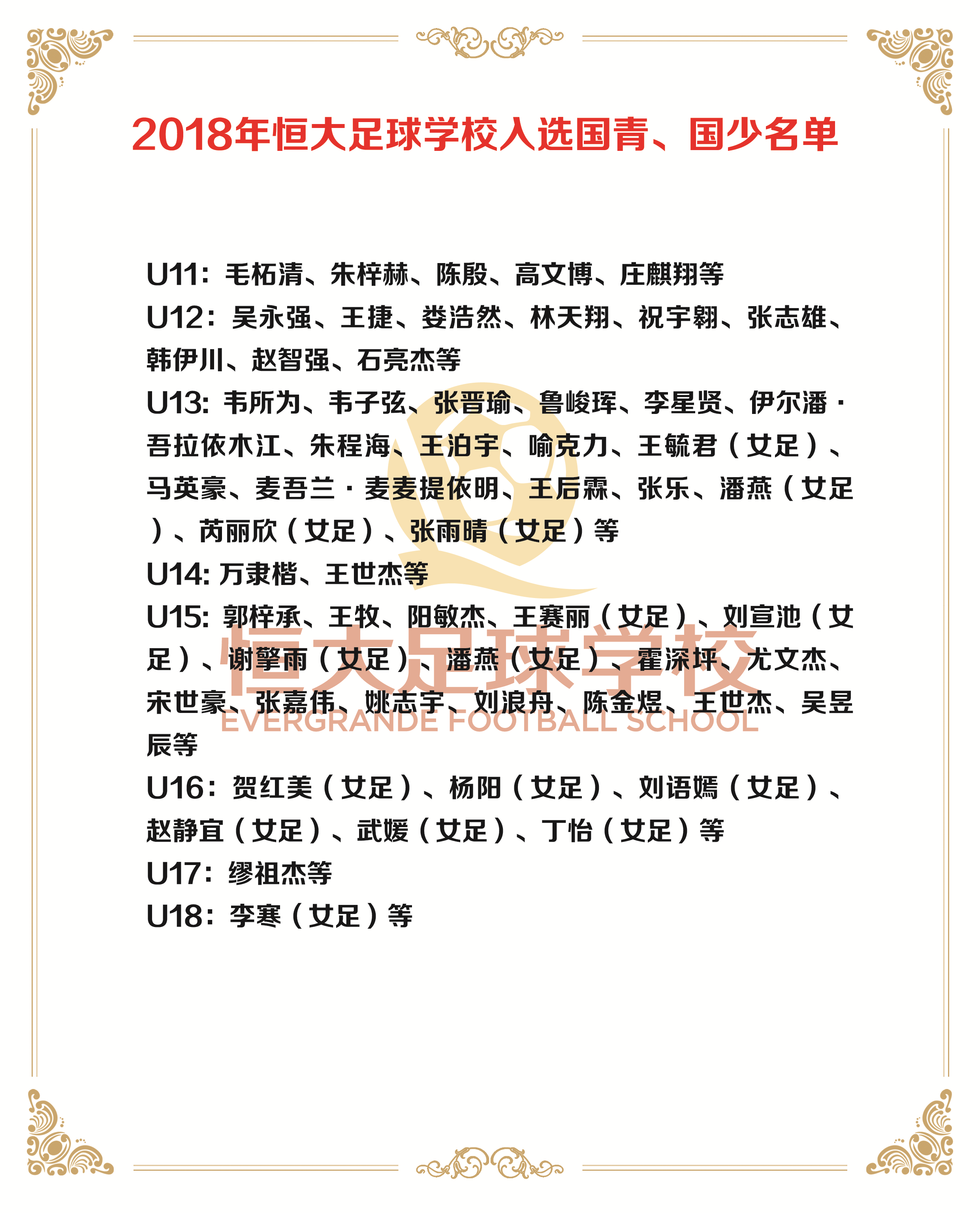 2018年是恒大足球学校书写辉煌的一年,全年共有117人次入选中国国青、国少队;
