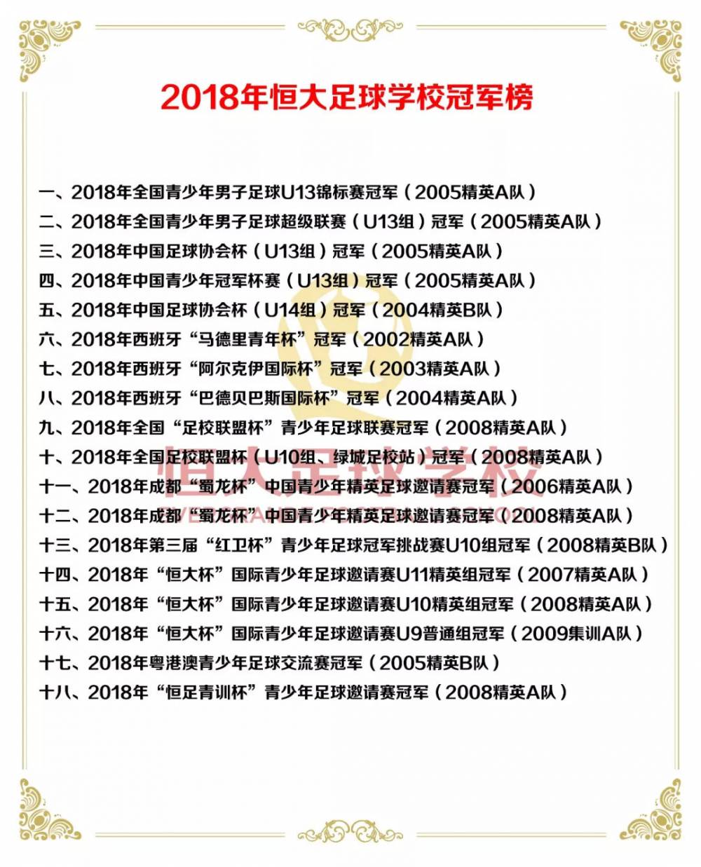 2018年是恒大足球学校成绩爆发的一年,全年共取得18项重大赛事冠军;