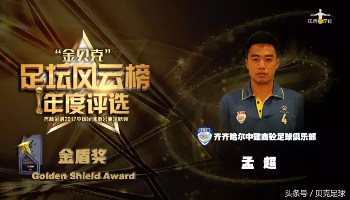 ▲“金贝克”足坛风云榜业余联赛最佳阵容、金盾奖得主——孟超