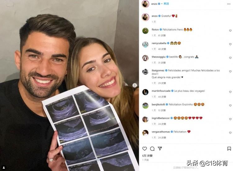 1月31日,恩佐在社交媒体上高兴地晒出了女友怀孕的照片,齐达内要当爷爷了!