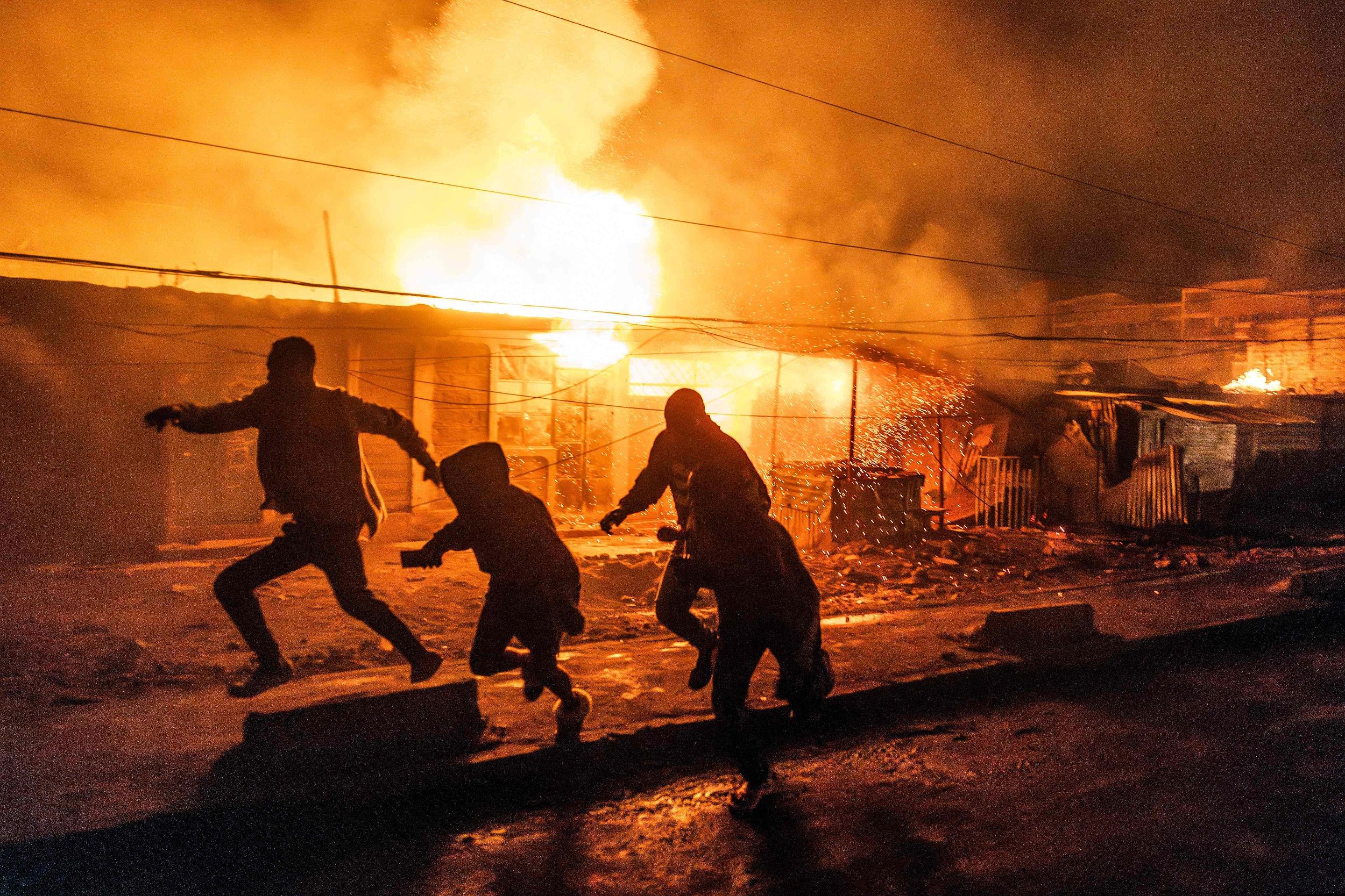 当地时间2024年2月2日,肯尼亚内罗毕,燃气爆炸引发大火,人们四处寻找掩护。