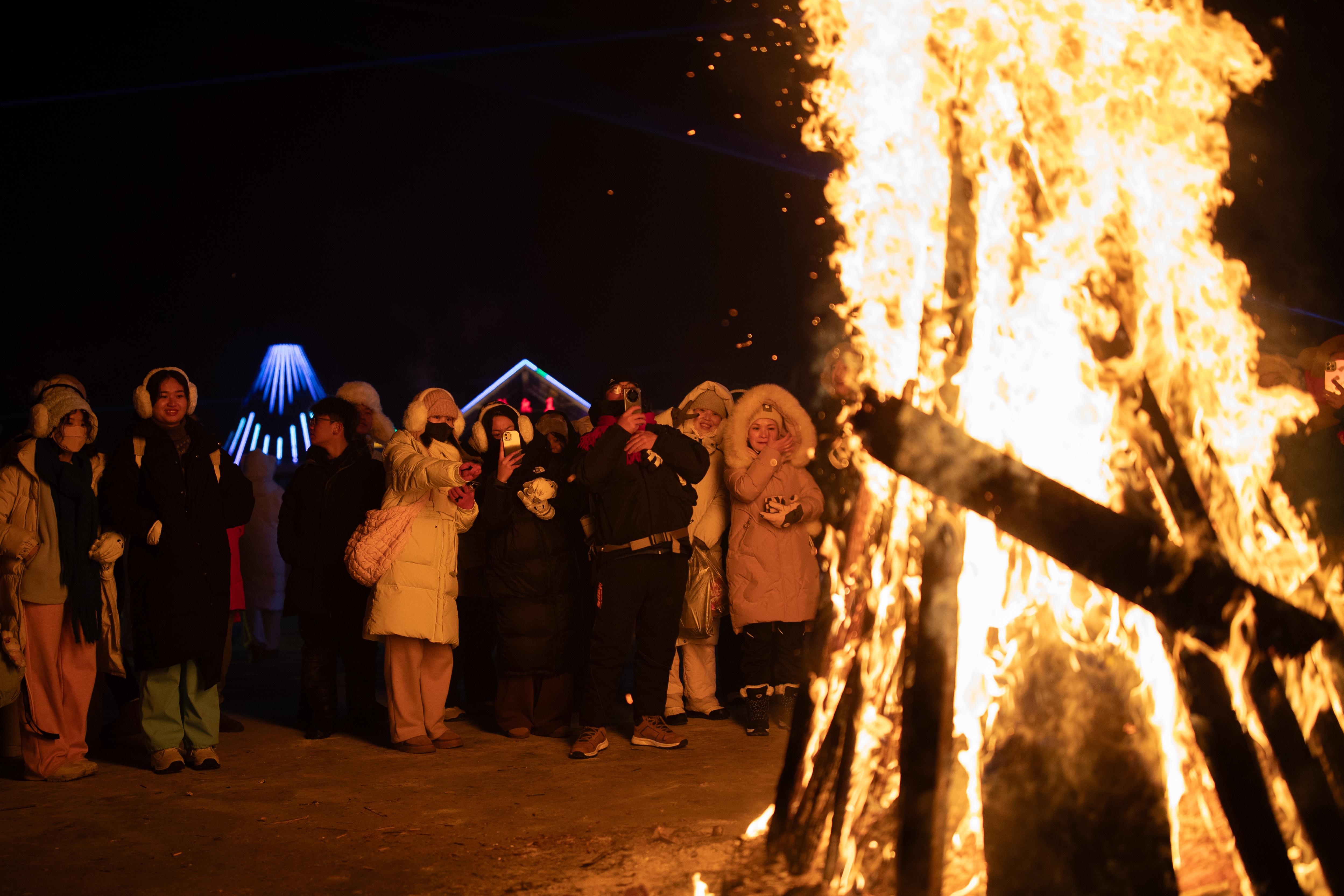 2月2日是中国北方小年,在黑龙江省漠河市北极村,来自全国各地的游客欢聚于此,庆祝小年。