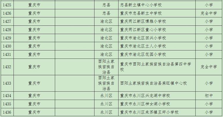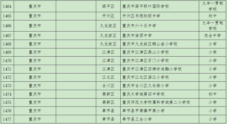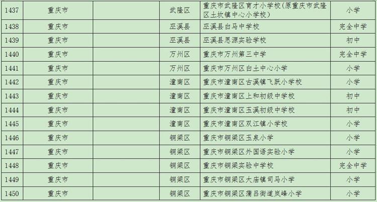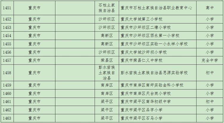 2021年度全国青少年校园足球特色学校名单(重庆)