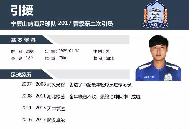 2017年6月22日,银川贺兰山足球俱乐部宁夏山屿海足球队与球员苑维玮、周燎、吴禹寅、刘伟国完成签约。宁夏山屿海足球俱乐部投入这么大,势在今年闯入中甲!去年的山屿海足球队可谓是高开低走,在中乙北区排名第一,无奈最终输给了四川安纳普尔那,最终饮恨中乙决赛,16赛季冲甲失败!日本主教练内田一夫引咎辞职!本赛季宁夏山屿海排名积分榜第四,距离冲甲的目标还相差甚远!王海明一度成为球队主帅,但是因为其过于单一的战术,球队始终在中游徘徊!无奈球队再次换帅!