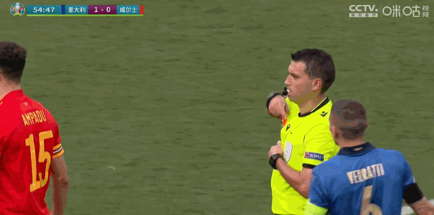 2020欧洲杯A组第3轮,意大利1比0取胜威尔士,佩西纳打进全场唯一进球,威尔士小将阿姆帕杜染红。