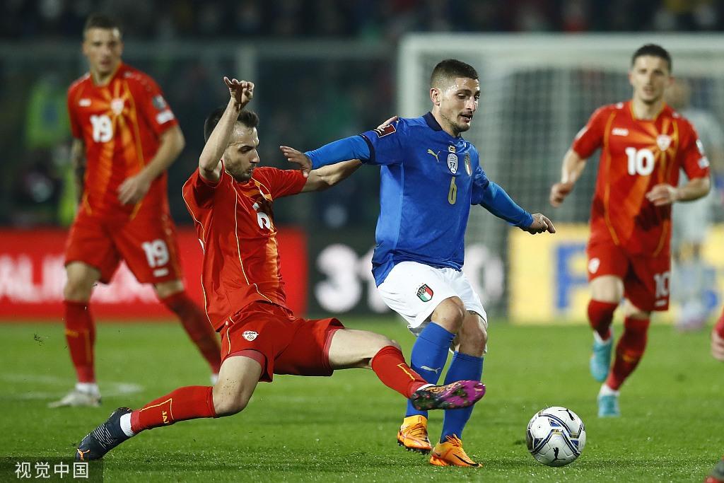 最终,意大利0-1北马其顿,意大利无缘2022卡塔尔世界杯。