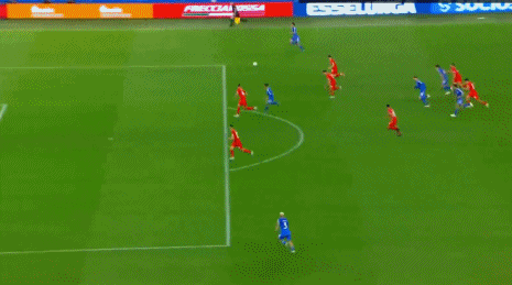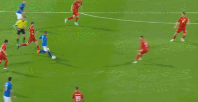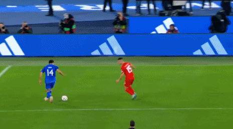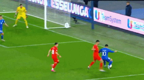 第45+3分钟,太猛了,基耶萨兜射碰到后卫变线入网,意大利3-0