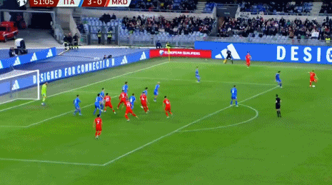 第81分钟,北马其顿前场左侧任意球机会,巴尔迪直接爆射,这球直挂远角,北马其顿1-1意大利。↓