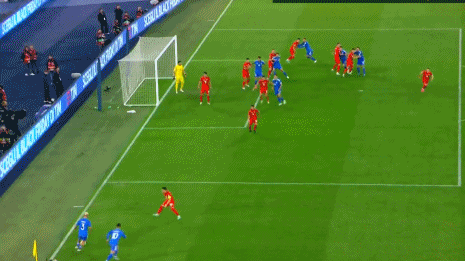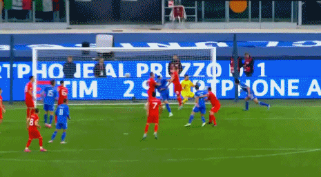 第23分钟,意大利右侧角球机会,前点克里斯坦特凌空垫射,这球被守门员挡出。↓