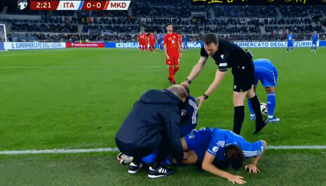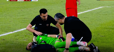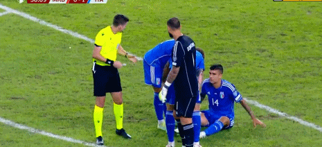 第42分钟,北马其顿门将出击因草皮不整受伤,经治疗后回归比赛。