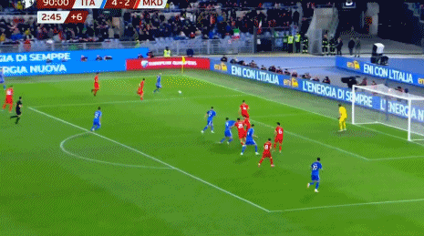 下半场伤停补时6分钟,全场比赛结束,最终意大利1-1北马其顿。
