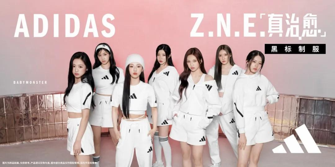 作为潮流风向标的 BABYMONSTER,成员统一上身 Z.N.E.「真治愈」黑标制服。