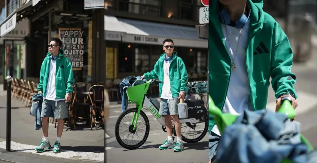 白打底 + 绿色卫衣看起来就很清爽,同时很吸睛。