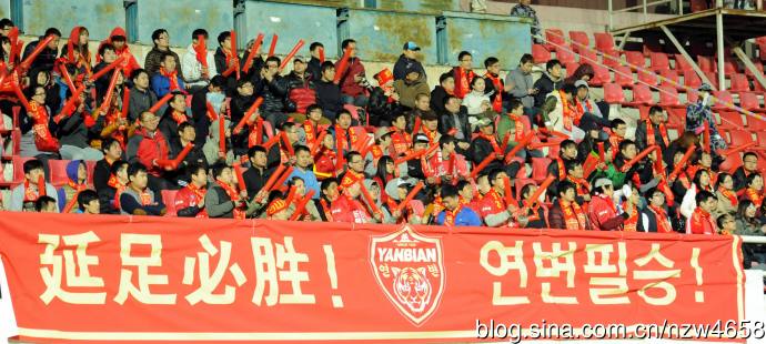 此役,延边球迷拉拉队反客为主,扮演着看台上的主人和主角。