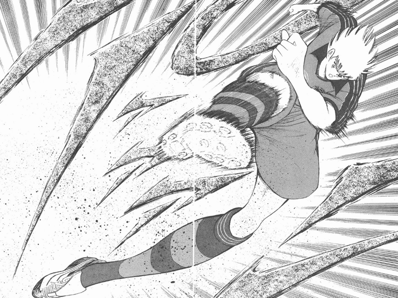他准确判断出足球轨迹,施展必杀技“反动蹴速迅炮” ,利用若林的力量将球反弹到了前场。而前场正好有施奈德在此等候,若林此时已经来不及回防了,只能看着足球入网。