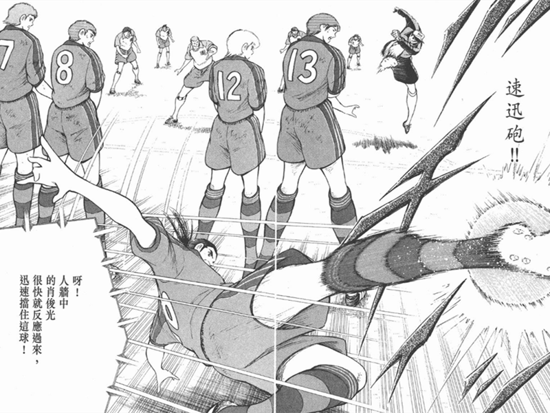 获得射门机会的若林源三拔腿怒射,就在拜仁众球员不知所措之际,肖俊光及时反应过来。