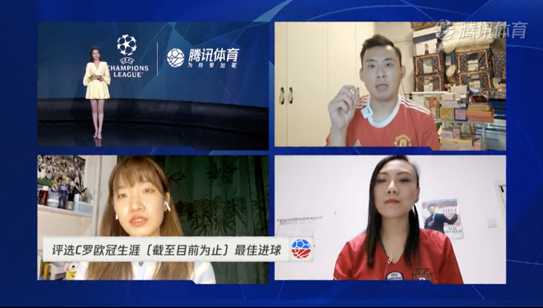 同时,如今腾讯的转播也愈发重视整个转播的观众参与度,在欧冠的比赛中,开场以及中场期间都加入了观众和自媒体博主的互动评球,无形中打破了赛事转播评论与球迷和观众间的专业壁垒。