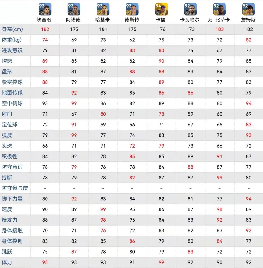 卡福 综合数据还是很强的,控球 盘带能力也是这八大球员里比较突出的,头球能力也是最好的一个,还有超级强大的体能,让他更加完美的进攻和防守来回奔跑。
