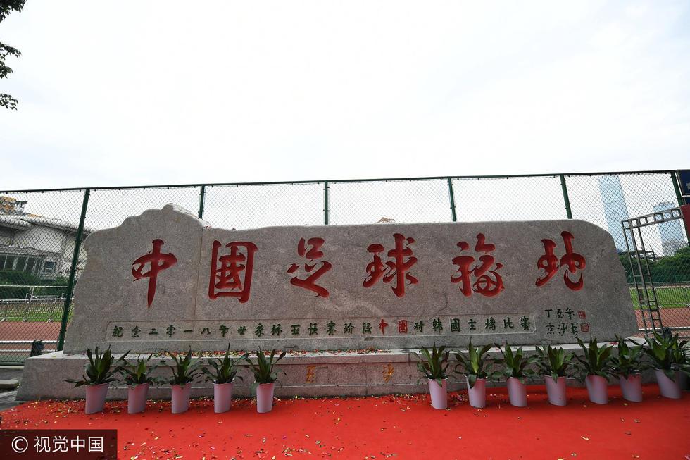 虎扑6月9日讯 虎扑足球6月9日讯 今天上午,“中国足球福地”石碑在长沙贺龙体育中心举行揭幕仪式。这块纪念碑是为了纪念今年3月的国足1-0战胜韩国队的12强赛而特意建立的。中国足协和湖南省、长沙市的有关人士出席了本次活动。