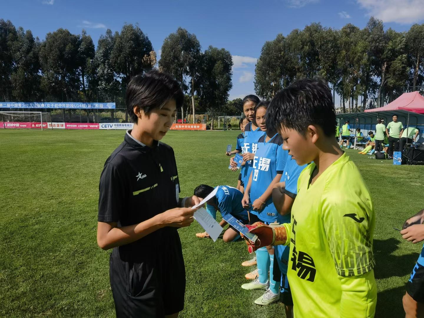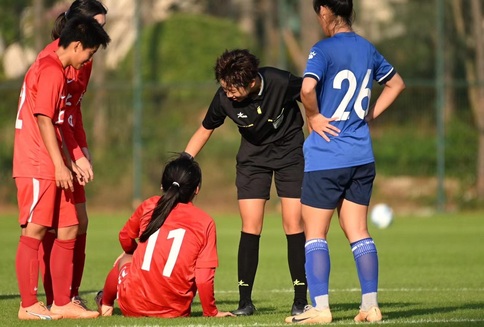 在场上选位好是有过踢球经历的裁判的优势,但选位太好有时也会成为困扰。 姜涵有些赧然,“因为之前踢过球,对球路很敏感。有时看到球传出后,(身份)转换不过来,就会不自觉地站到球即将到达的位置,很碍事,对队员的抱怨挺不好意思的。”好在如今执法的次数多了,再加上老师和前辈的指导,姜涵的选位相较以往好了不少,“不会挡着人家道儿了。”王雨冉则认为自己还处于改的过程中,需要继续在比赛里寻找“不会碍事”的最佳观看角度。