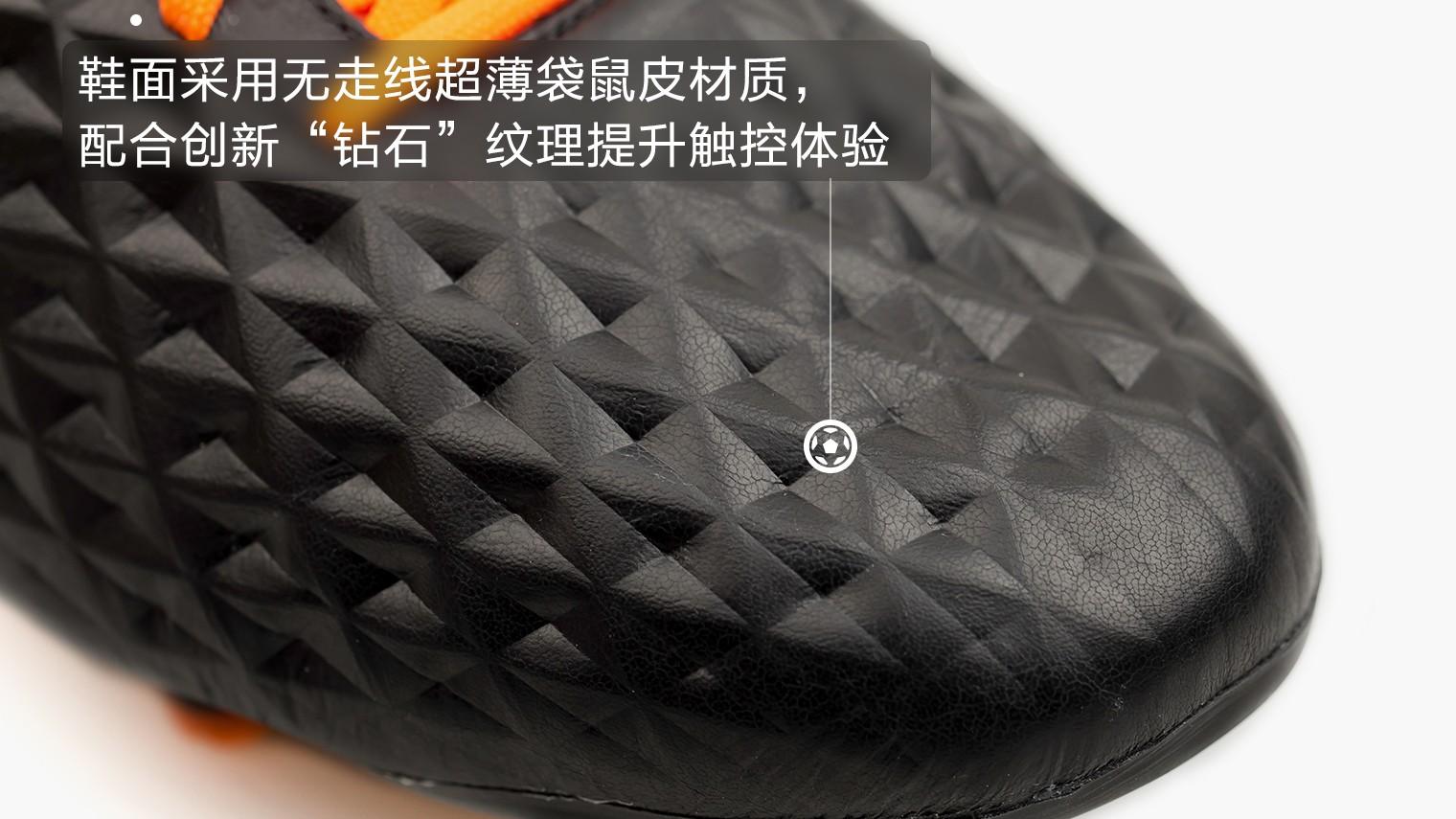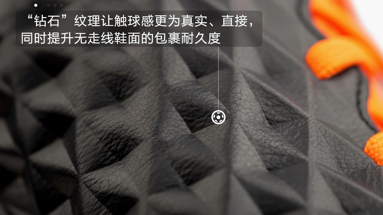 而现在的传奇8代Elite级别战靴同样是一双里程碑意义Tiempo,鞋面使用了无走线超薄袋鼠皮材质,并加入立体钻石纹理提升触球感受,同时还能有效防止雨水与污物渗入真皮层,进而提升鞋面寿命。同时,耐克为传奇8代打造了一个全新的中足Flyknit Fit结构,为足弓提供更多支撑,从而带来舒适、贴合的穿着感受。最后,耐克在鞋仓内层,鞋面之下加入已经在Phantom Vision上使用过的Quadfit科技内靴,通过Quadfit四向弹力网布材质提供包裹、锁定、贴合功能,新技术不仅能适应任何脚型,同时有效抑制真皮鞋面过分延展。这就是Tiempo Legend 8 Elite足球鞋全新的三层结构鞋面。