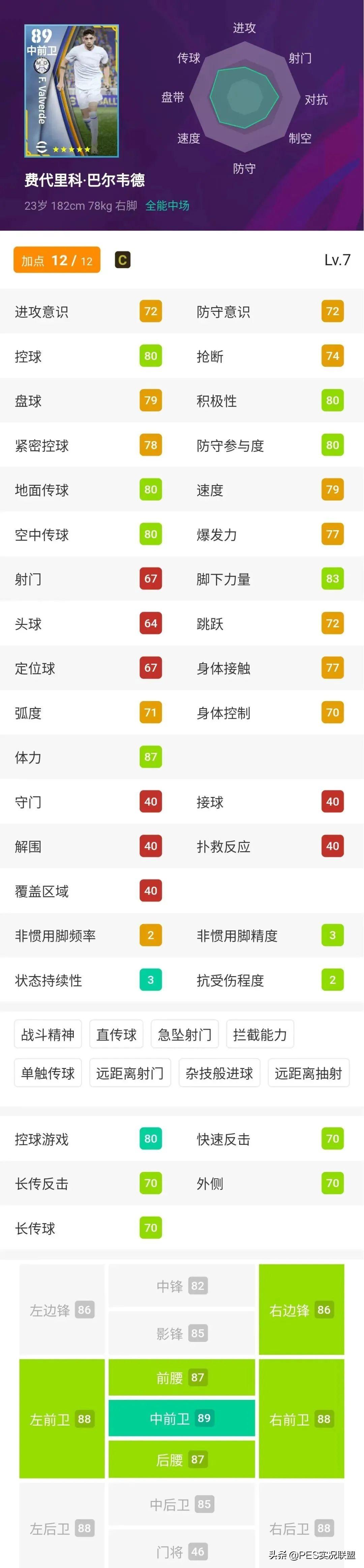 球员简析:巴尔韦德属于游戏中吃香的全能中场类型,但他的模型和防守并不具备特别突出的优势,同时能力特点也不以防守见长,再加上射门和头球存在短板,并非标准的六边形战士,因此整体实力距离毕业尚有差距。但对于现阶段缺少可用中场的玩家来说,巴尔韦德显然是一个有益的补充。