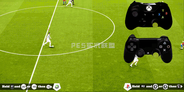 技巧说明:压步转弯是C罗的招牌动作,更通俗的叫法是“脚后跟磕球变向”。在游戏中也是一个相当实用的花式技巧,而且操作起来非常简单。拥有该技能的球员,只需左右摇杆如上图所示垂直拖动即可。