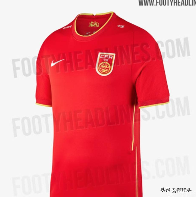 footyheadlines独家披露的国足2020款球衣,主场球衣依旧以全红为主,不过领口、袖口有黄色点缀。圆领左右分别印有“CFA”以及“中国”字样,领子内部则印有龙纹。与此前的国足主场球衣相比,总体上的感觉出现了巨大的变化,视觉冲击力极强。