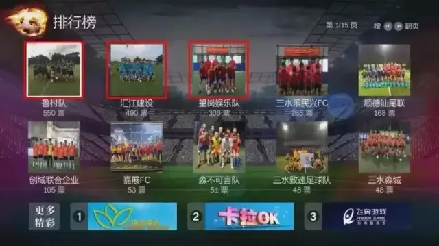 5、排行榜将显示各球队票数情况