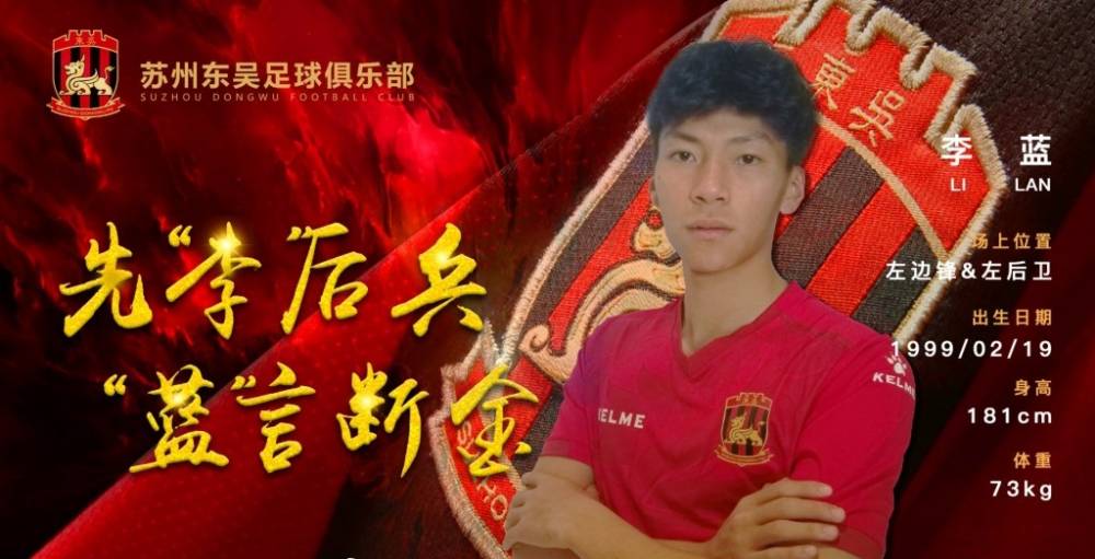 东吴官方公告如下:经与球员本人及俱乐部协商一致,即日起原上海申鑫球员李蓝正式加盟苏州东吴足球俱乐部。加盟当天正值元宵佳节,也恰逢这位小将20岁的生日,芳华岁月,美好相遇,让我们欢迎李蓝加盟球队的同时,也祝他生日快乐!新赛季他将身披苏州东吴队36号战袍,成为球队U21球员,为苏州足球贡献自己的力量。