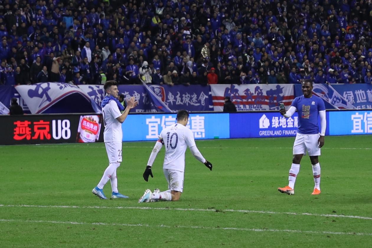 进球后申花球迷陷入狂欢,他们尽情地庆祝着这粒来之不易进球,而深圳队则显得有些沮丧,但他们并没有放弃,依然场上拼尽全力