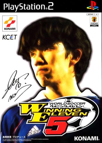 接着2001年PS2主机上第一款实况足球,《世界足球 胜利11人 5(World Soccer Winning Eleven 5)》。完美的画面表现,以及能力值从19分改为99分,是本系列最大的特点。(小编实在查不到这个封面人物是谁。谁能告诉我~?中村俊辅吗)