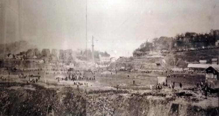 裴兴国老人回忆,在体育场开始修建之前,大田湾还是一片山沟,需要填平。因此,市政府发动机关干部和市民参加义务劳动,将跳伞塔旁的山坡推平,再用推平山坡的土填到大田湾的沟壑里。“硬是用双手推山和填沟填出来的。”