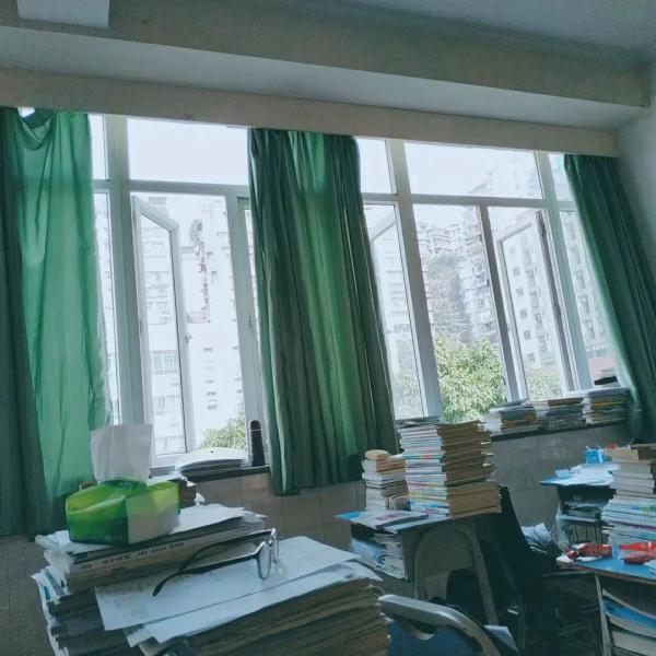 记忆里的教室,有我最喜欢的绿窗帘,窗外有我最喜欢的绿树蓝天,教室最后面有最喜欢的小盆栽,还有好多好多。当下一阵风吹起,窗帘后不会再有人躲着吃早餐。