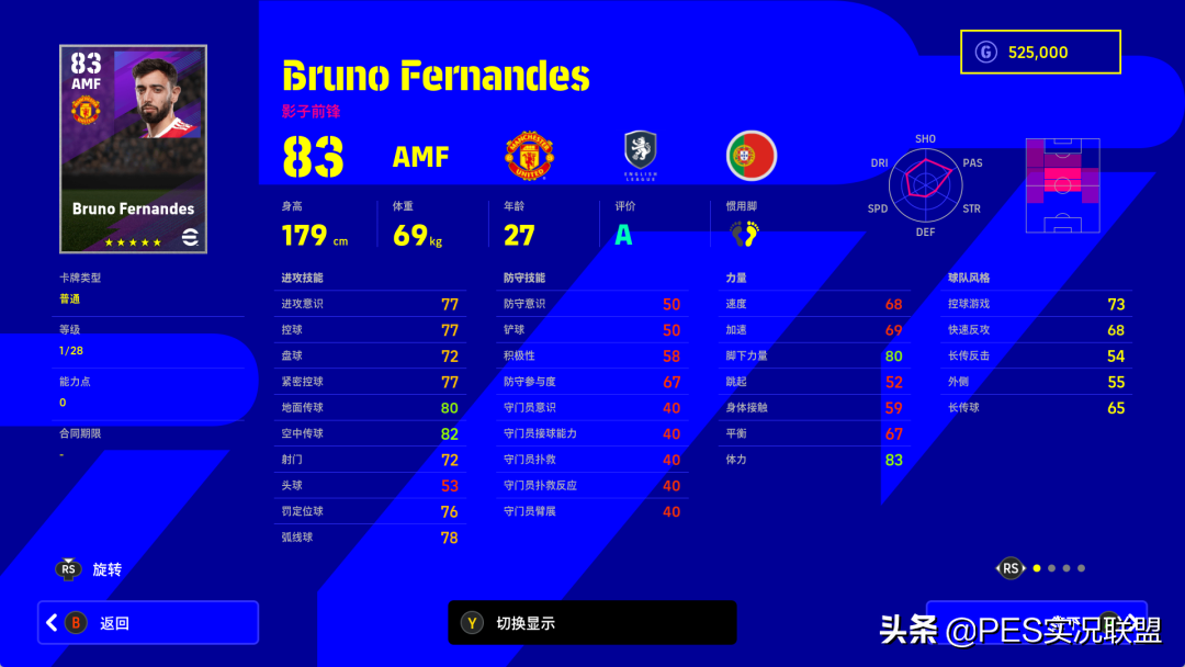 属性变化:进攻意识-9、控球-10、盘球-9、紧密控球-9、地面传球-10、空中传球-11、射门-12、头球-7、定位球-11、弧线球-12、速度-10、加速-10、脚下力量-11、跳跃-6、身体接触-7、平衡-9、体力-12、防守意识-7、铲球-7、积极性-7