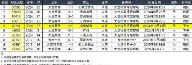 49151名球迷现场观看英博比赛,中甲现场观众前10均为大连球队
