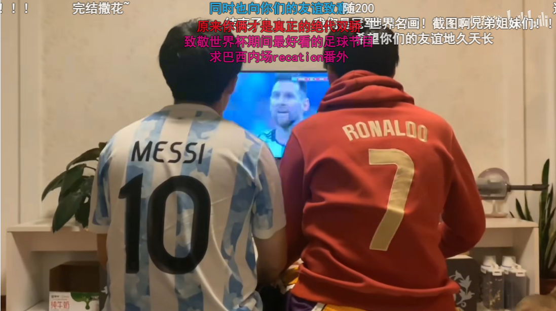 说到真实,两人因梅西、C罗表现而做出的反应最具节目效果。比如当其中一方的偶像发挥出色时,另一边总会五味杂陈,有时开个玩笑“酸一下”对方,有时为自己的偶像“狡辩”几句。其实这也是国际足坛“绝代双骄”时代,双方球迷阵营的一大特点。