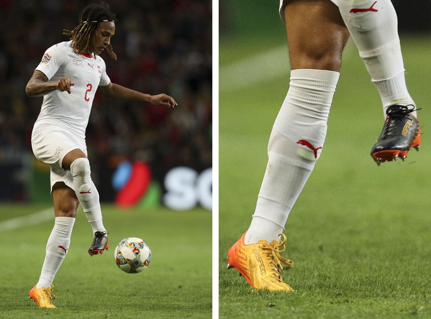 凭借着C罗上演的帽子戏法,葡萄牙主场3比1战胜瑞士晋级欧洲国家联赛决赛。除了上演帽子戏法的C罗外,我们显然对瑞士边后卫凯文·姆巴布脚上这双PUMA鸳鸯战靴更感兴趣。一双两年前发布的PUMA evoSPEED 17.SL S足球鞋。