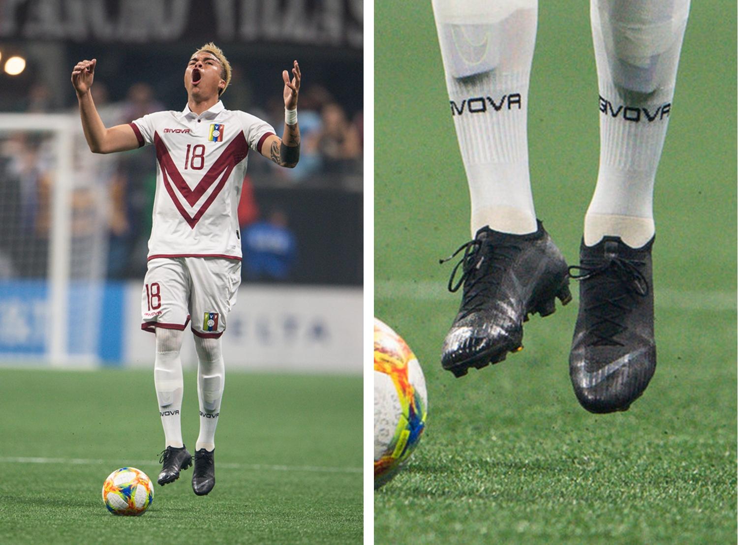除了墨西哥国门乔纳森·奥洛脚上这双umbro“小白鞋”值得我们关注外,委内瑞拉国脚佩尼亚兰达脚上的“小黑鞋”同样看点十足,一双全黑配色Nike Mercurial Vapor 12 Elite。