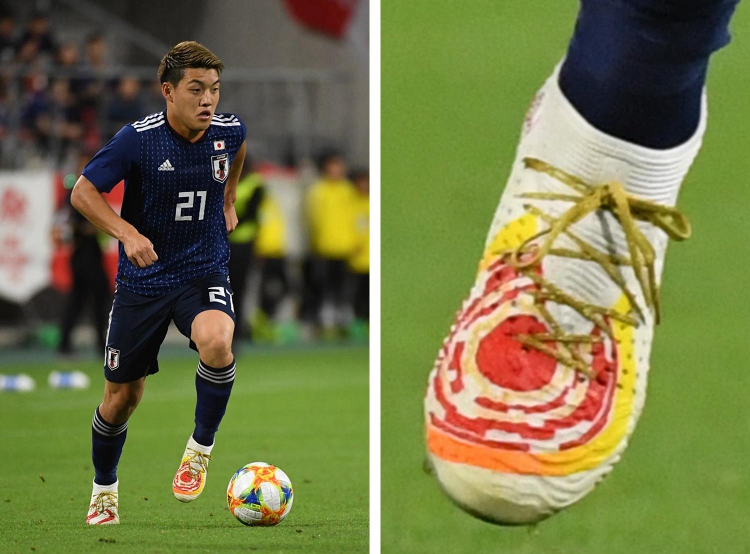 作为另外一支受邀参加本届美洲杯的亚洲球队,日本国家队上周与特立尼达和多巴哥国家队进行一场友谊赛来演练阵容。作为目前日本足坛的当红炸子鸡,刚刚与PUMA签下一份大合同的堂安律上脚了一双带有涂鸦的定制款PUMA FUTURE 19.1 NETFIT “Code Breaker Pack”足球鞋。
