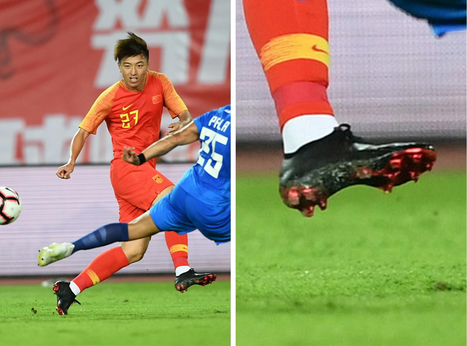 虽说国足此次热身的对手菲律宾国家队算不上什么强队,不过队中球员们在球鞋上的选择还是颇具看点的。比如6号球员伍德兰本场穿着的战靴便值得我们拿出来好好说一说。一双亮眼的Nike Total Laser限量复刻足球鞋,也不知道这位老兄脚上的限量编号是多少。