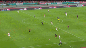 下半场比赛开始,第47分钟,秘鲁队左路横传,中间防守队员漏过,皮球来到格雷罗脚下,随后倒三角回传队友,被防守队员破坏。